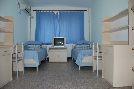 面積:16㎡、1日1ベッド45~80元。バストイレ共同。主な設備:テレビ、電話、エアコン、ブロードバンド、クローゼット、デスク、椅子、ベッド、寝具。