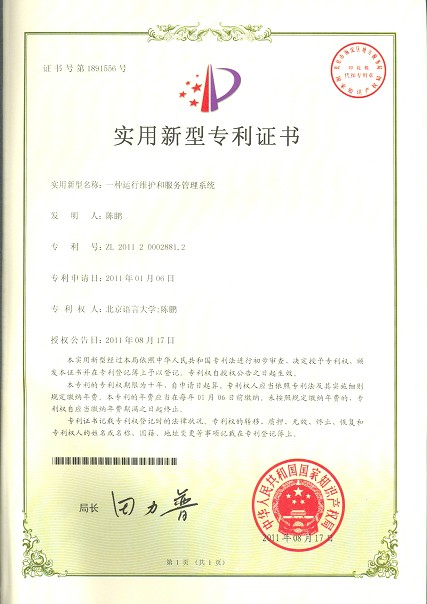 | 实用新型专利:一种运行维护和服务管理系统 | ||||